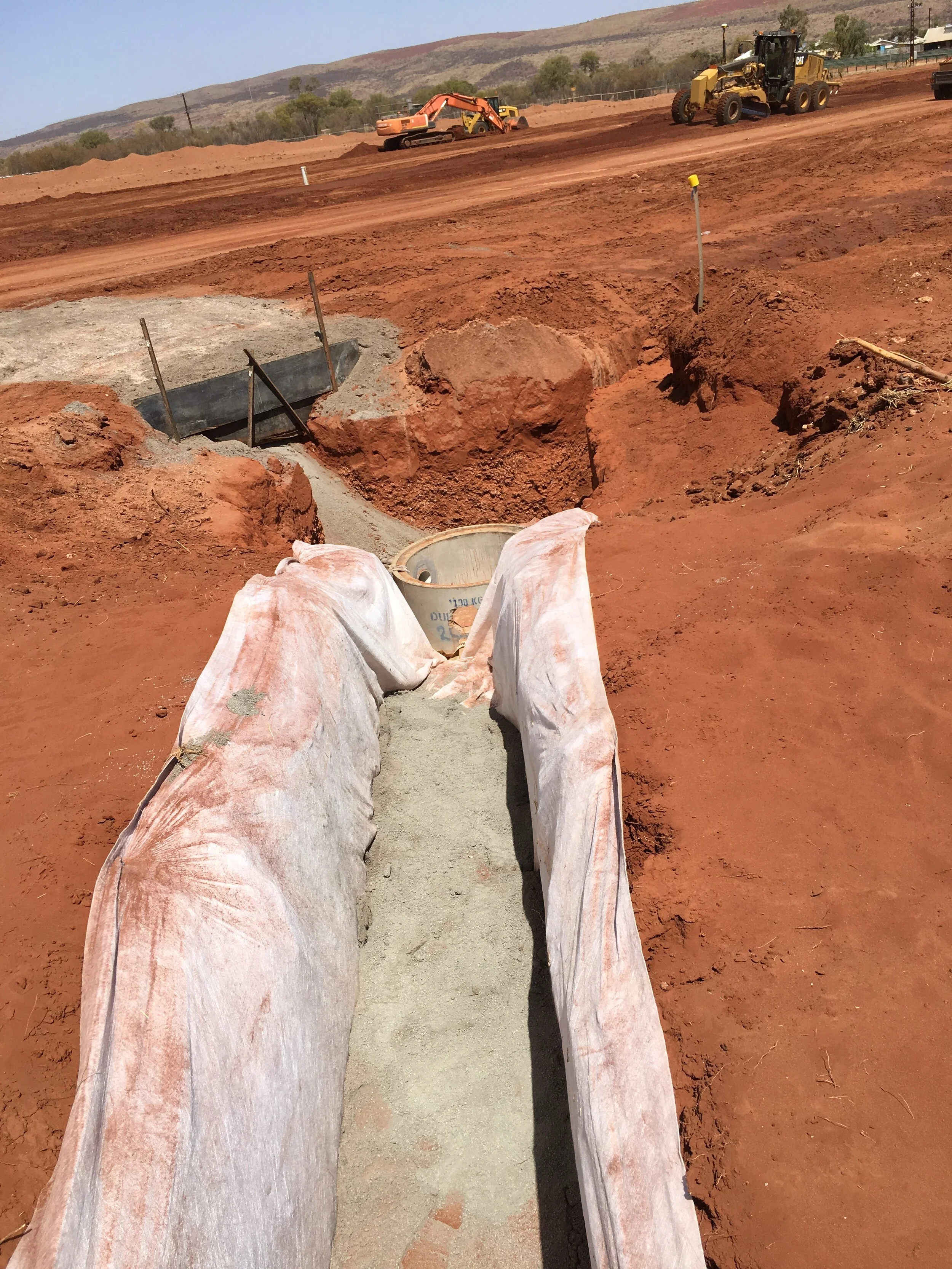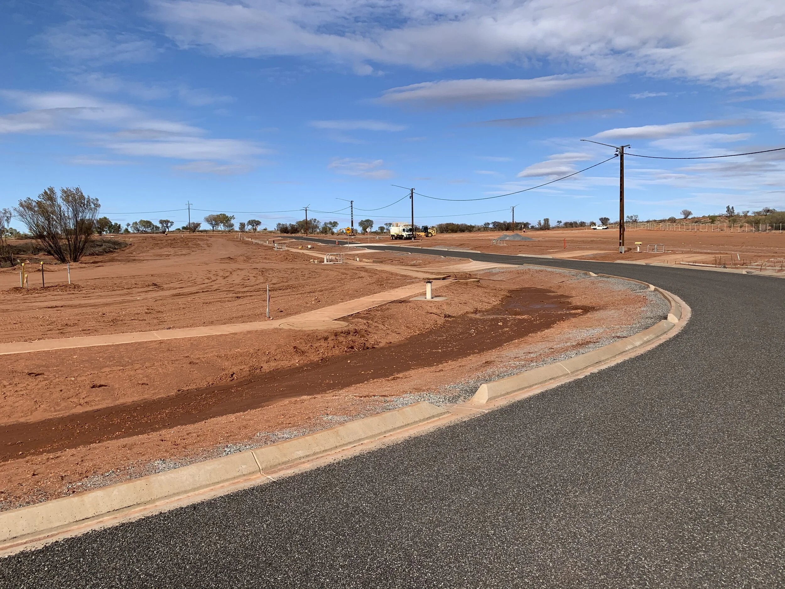 Description: 30 lot subdivision for remote indigenous housing in the community of Hermannsburg (Southwest of Alice Springs). Works included construction of roads, water mains, sewer mains, power, communications infrastructure, sealed road with kerb, gutter, open drainage and concrete footpaths.